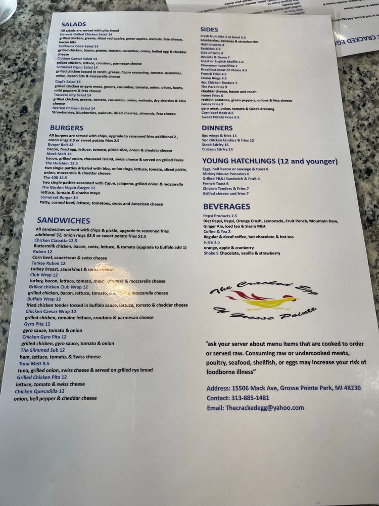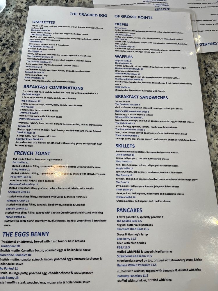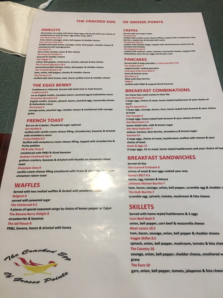 Introducing The Cracked Egg of Grosse Pointe, a cozy breakfast and brunch spot located in Grosse Pointe, MI. This establishment offers a wide range of delicious waffles for those seeking a delectable morning meal. With options for vegetarians and a variety of daily specials, there is something to satisfy every palate. The restaurant provides a welcoming atmosphere with attentive service, making it a great choice for groups or a leisurely breakfast. Customers rave about the Egg Benedict, Catfish breakfast special, Monte Cristo sandwich, and generous omelettes. The Corned Beef Hash is also a standout dish here. With excellent customer service, quick and efficient staff, and a menu full of flavorful options, The Cracked Egg of Grosse Pointe is a must-visit for a delightful breakfast experience.