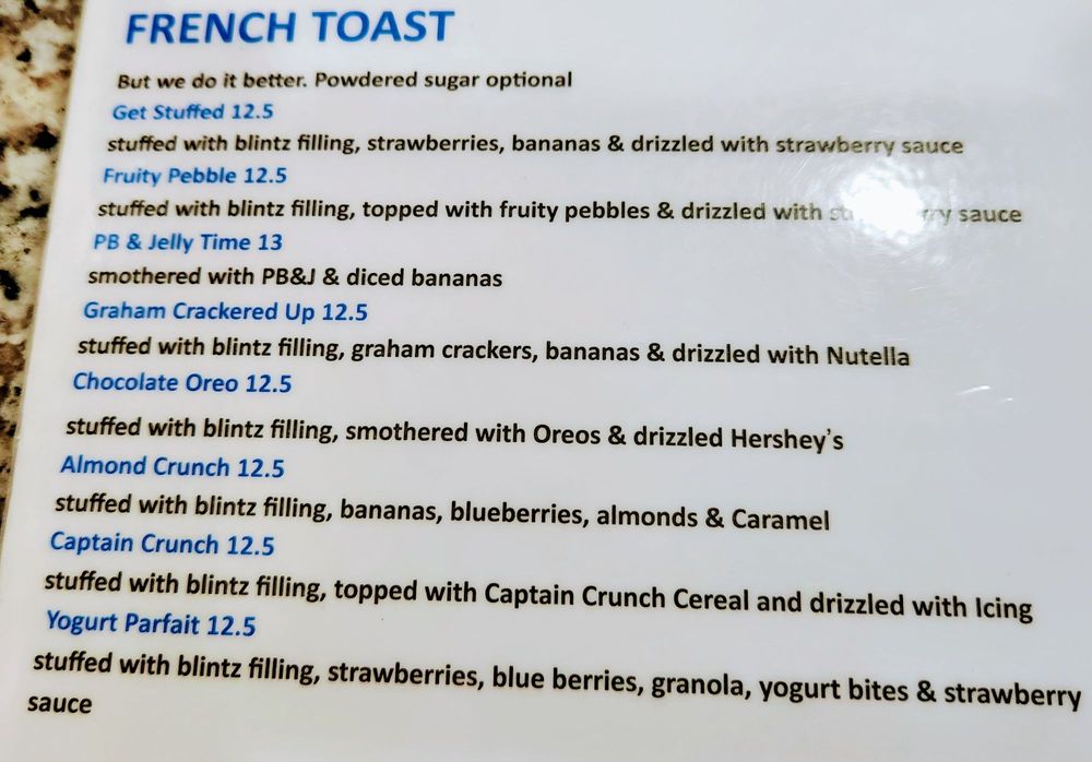 Stuffed with blintz filling, bananas, blueberries, almonds & Caramel